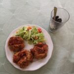 3) Kyllingburitos med salat, og sjokoladefondante til dessert