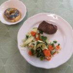 1) Yttrefilet av storfe med thaisalat, og donut til dessert
