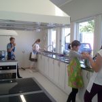 Ved oppstart høsten 2017 stod et helt nytt skolekjøkken klart til bruk på Kongshaugen. Arbeidet er utført av en rekke håndverkere, og mye av arbeidet er også utført på dugnad. Kontaktlærer og lærer i Mat-og-helse på ungdomsskolen, Evelyn Haugen, er godt fornøyd med det nye kjøkkenet, som holder høy standard og er godt utrustet. Bildene viser de fem elevene i 8.-10. i aksjon i den første skolekjøkkentimen i det nye kjøkkenet. Ting fungerte som det skulle, og etterpå vanket det kringle og jordbærgrøt med vaniljesaus til de andre lærerne.